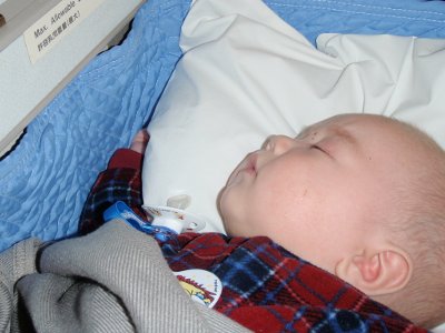 He's tired, and we're not even on the plane yet! | Bassinets on planes are lifesavers |