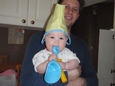 Julian with "Ghost Cat" and "Pink Manta-ray" | We can drag ourselves around now, somewhat |