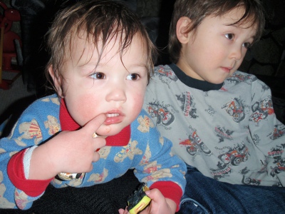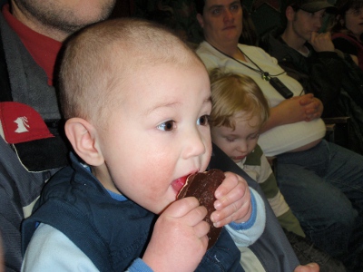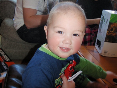 Bald again. After all that hard work growing it! | Julian was much more interested in the snacks than Liam's concert |