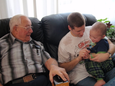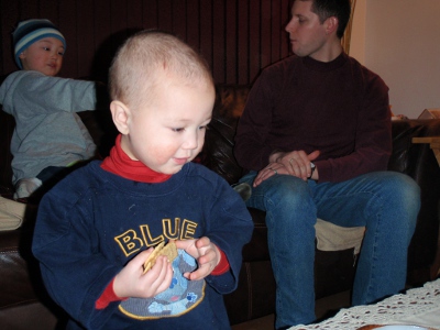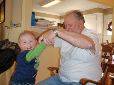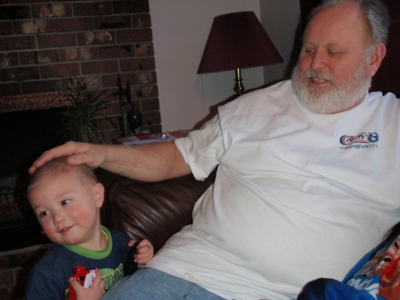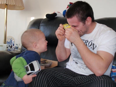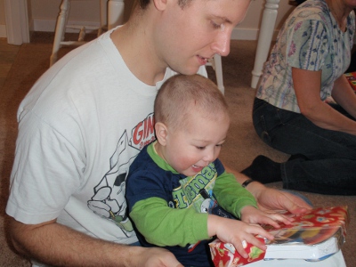 Meditating on the best way to mess with the tree | Dad's tummy is the best seat in the house |