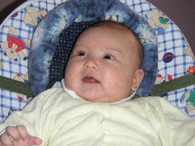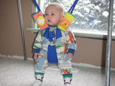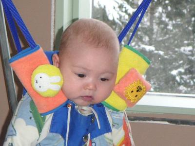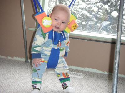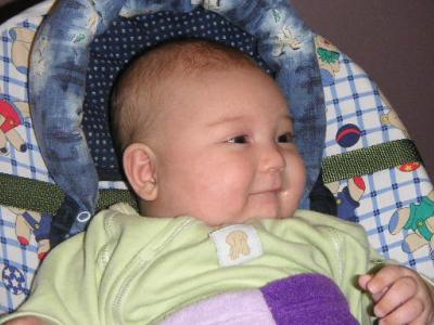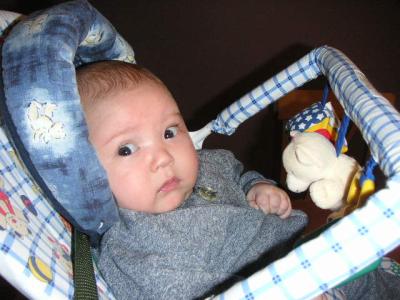 Ya know, I could really use some milk right now... | Playing with the bear on my bouncy seat |