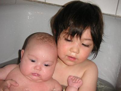 Hold on tight, big brother! | You're not taking a picture of THIS, are you? |