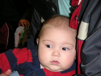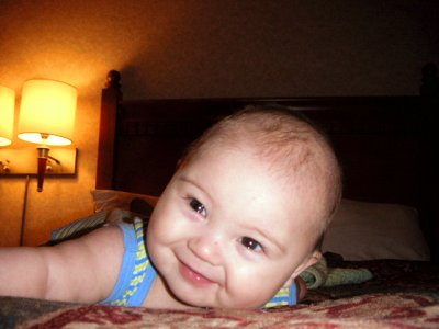 On our trip to get Liam his Japanese passport from the consulate in Vancouver | Excited to be in his first hotel-room? |