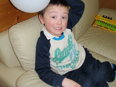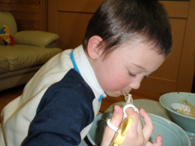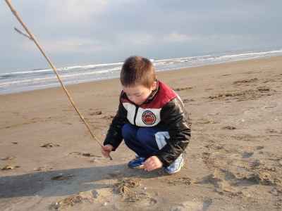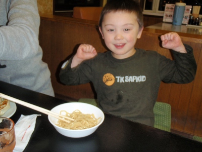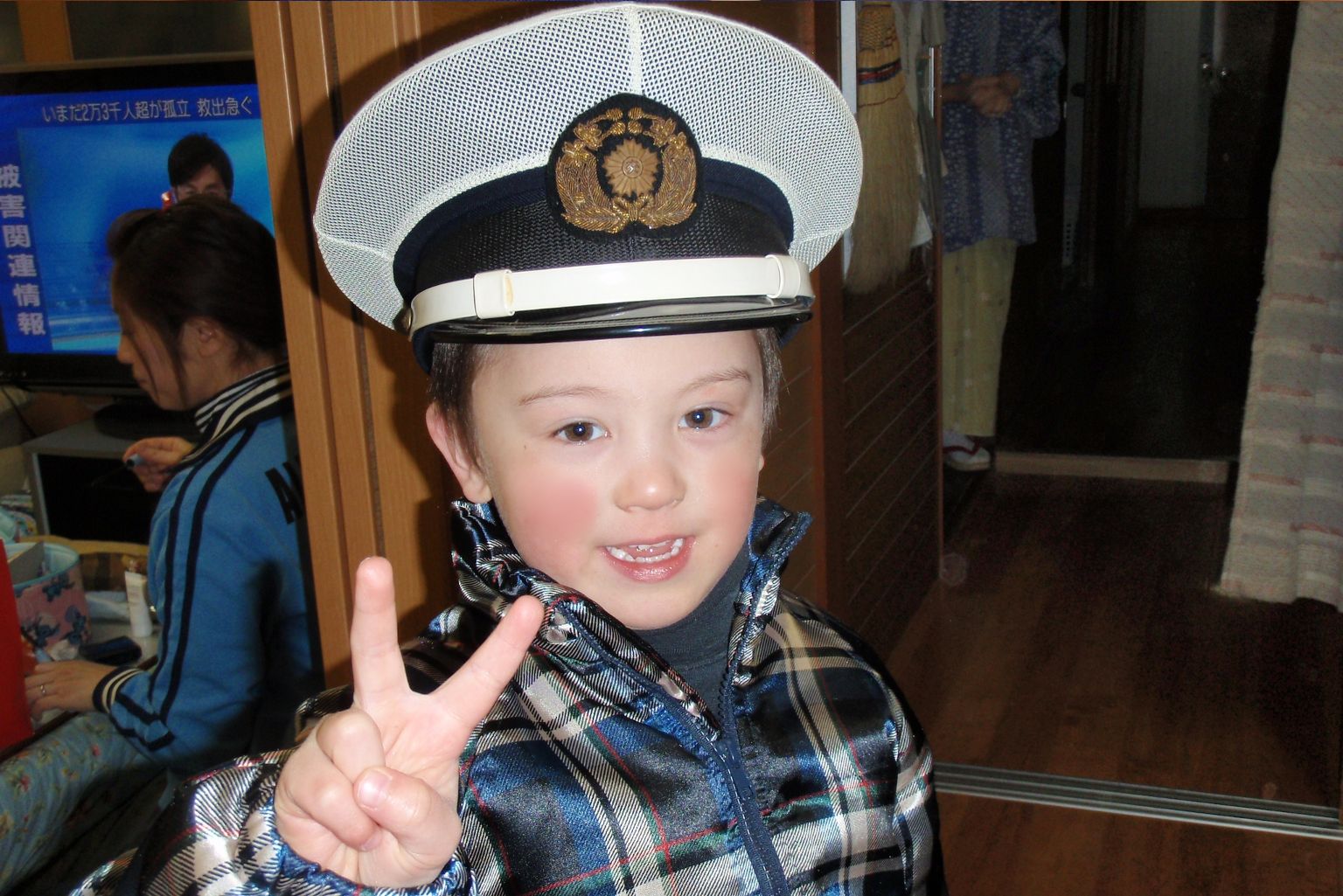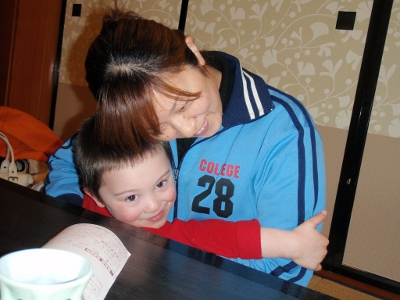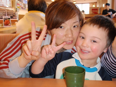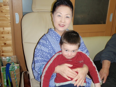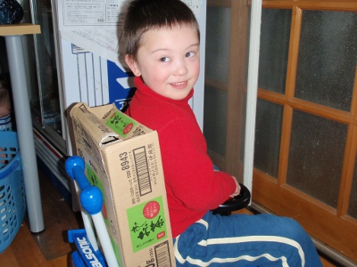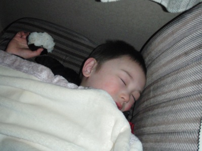 Liam passed out with a rice-ball at the emergency shelter (March 11th) | |