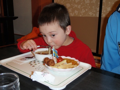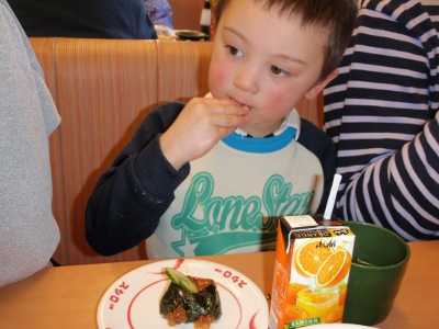 Liam is never far from Jamma- | Liam takes a liking to salmon-roe sushi |