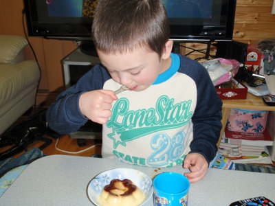 Can he handle the entire melon-bread? | The caramel on this pudding is divine |