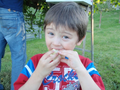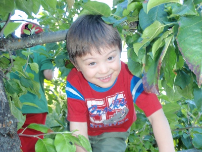 To pick apples right, you really need to be in the tree! | Nice, big apples from our tree this year |