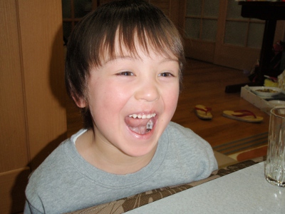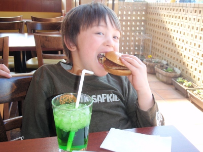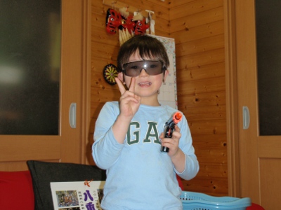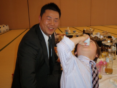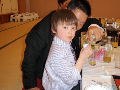 Liam getting a little taste of sake (ie. Orange juice) | |