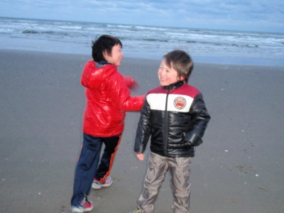 Who cares if it's cold...it's the beach! | Everyone got to try flying Liam's handmade kite |
