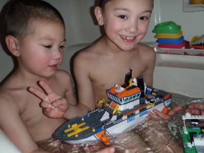 We tried taking the Lego ship in the bath