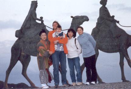 We're standing in front of the camel statue monument. It was cold and windy! | We went to "The desert of the moon" in Onjuku |