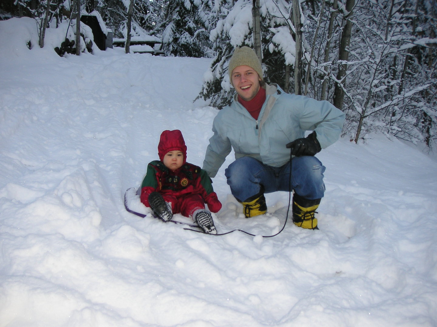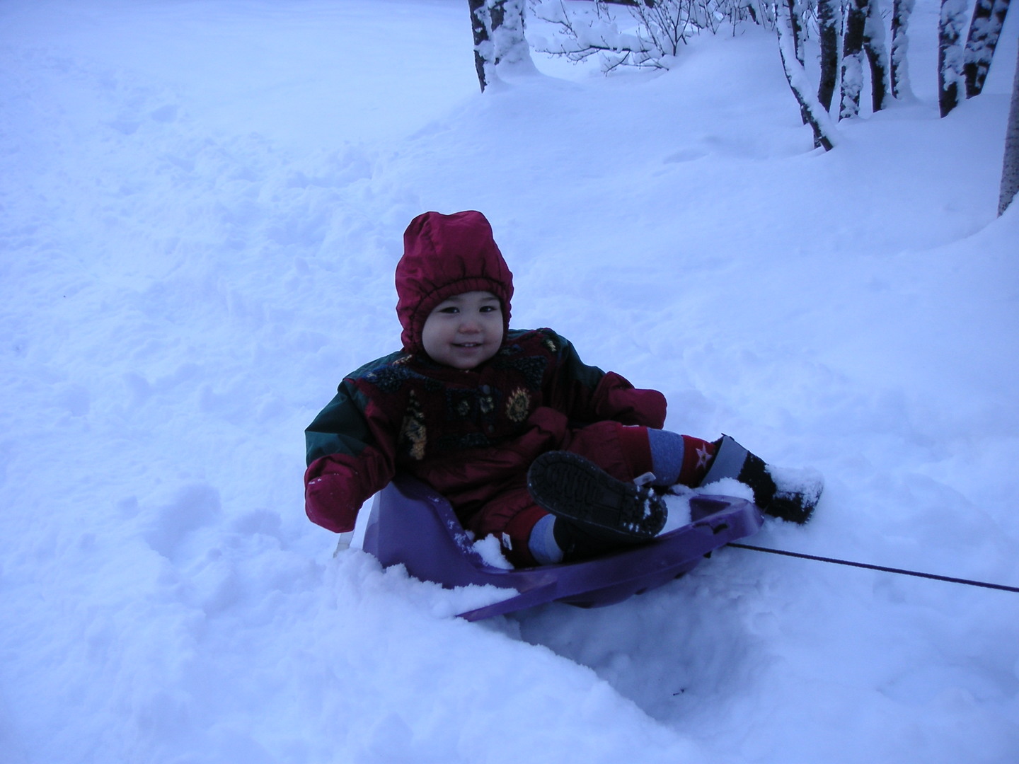 Sledding in the back yard!