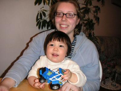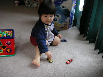Playing cars with Auntie Erica