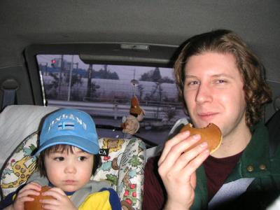 Sean is eating Sembei (Rice cracker), Jamma- is eating Sean | |