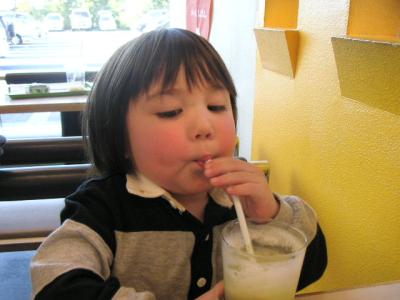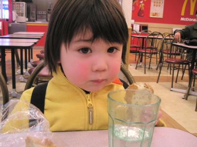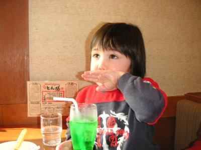 Eating some rusks in a food court in Nagasakiya (Naruto) | Drinking Melon soda at a tonkatsu restaraunt |