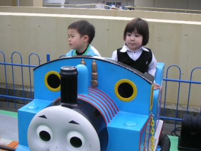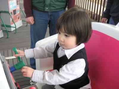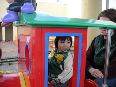 Sean found Thomas the Tank Engine stuff in the play park | We took a ride on a bumper car |