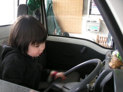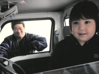Playing in Grandpa's truck was a big hit | with Grandpa in the background |
