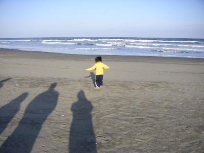 Walking on the beach with dad's friend Dennis, and his wife Hitomi | We all went for a walk on the beach |