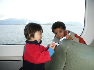On the ferry mom bought me a...Ferry? | Here I am playing with another little boy with the same Air Canada Jet |