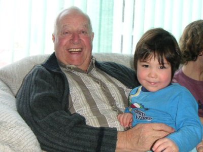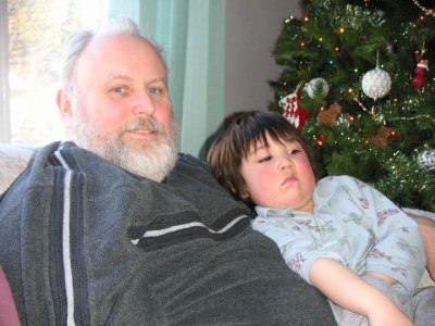 With Grandpa. This Christmas stuff makes a guy tired... | |