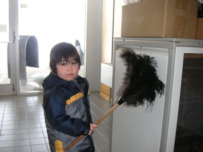 Helping clean Papa's office (Child Labour!)