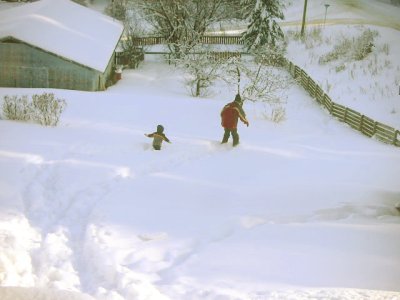 Papa skiing in the yard