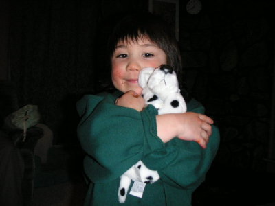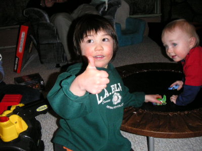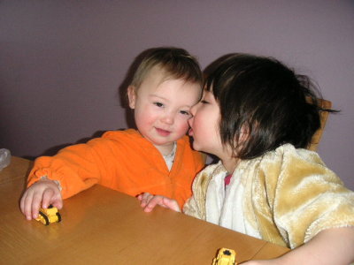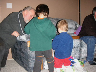 Big hug for Opa and Oma's present! | Apparently the cars from the movie "Cars" are a hit |