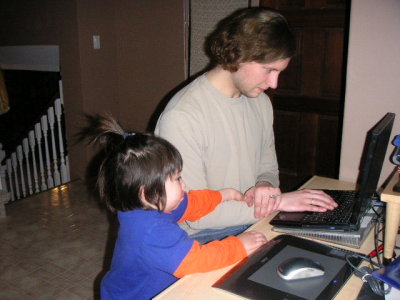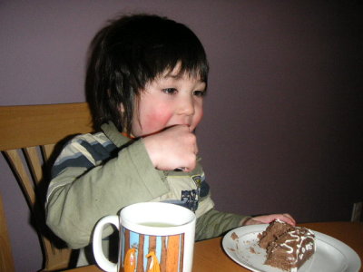On Feb 4th, it was Sean's party for his relatives. More Puyo cake! | Lot's of interest in Grandpa's present |