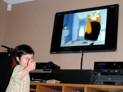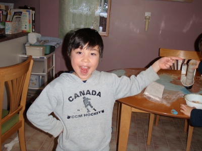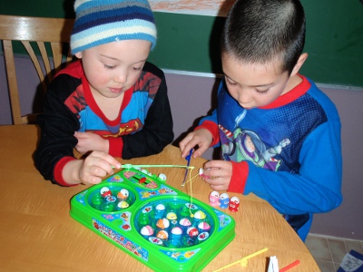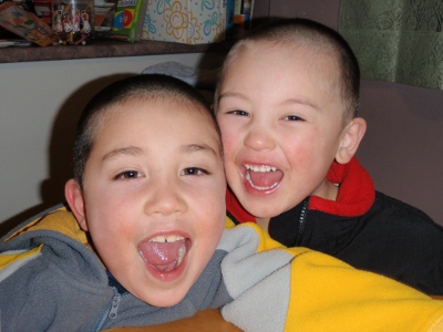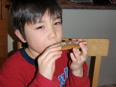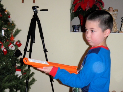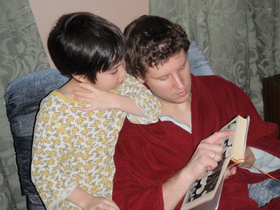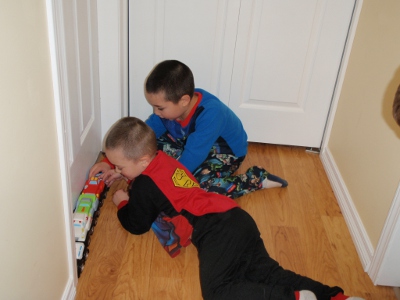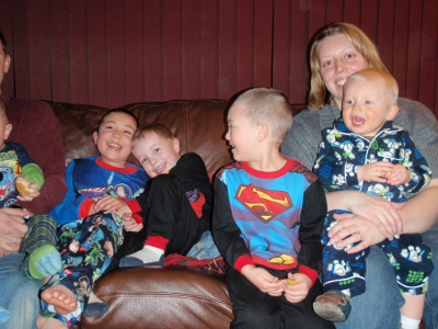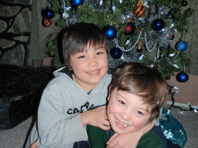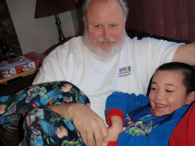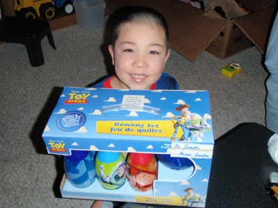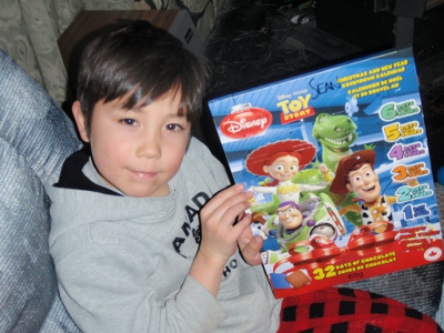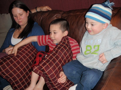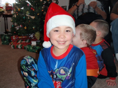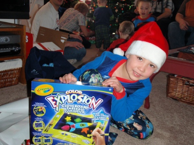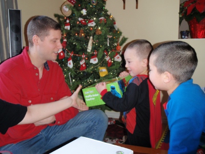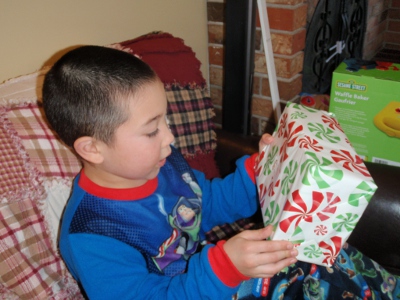 Opening gifts at Auntie Erica and Uncle Wes' place