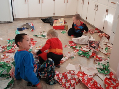 Throwing the wrapping paper in the kitchen is like a second Christmas