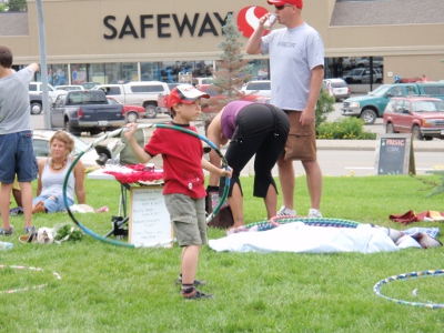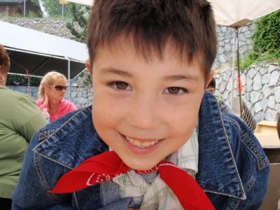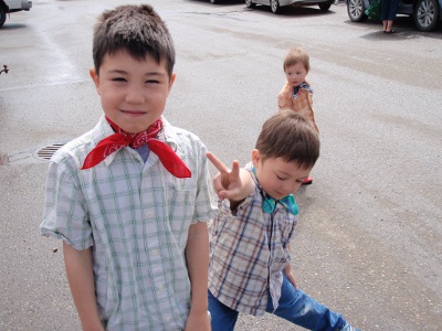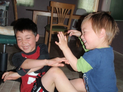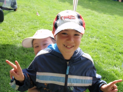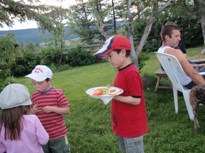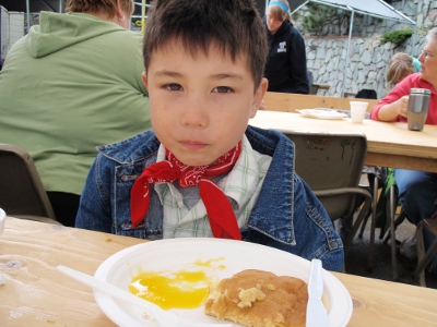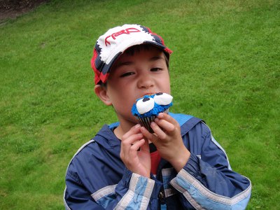 Sean eating one Will's birthday Cookie Monster cupcakes