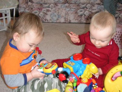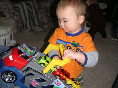 おもちゃに囲まれて楽しいね